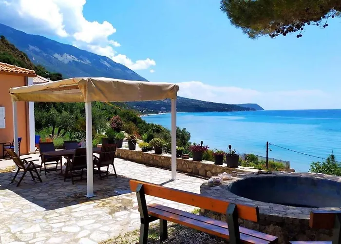 Η παραθαλάσσια Nikos & Spiros Βίλα Τραπεζάκι απέχει 25 λεπτά με τα πόδια από την Παραλία Λουρδάς και προσκαλεί τους επισκέπτες να χαλαρώσουν στη βεράντα.